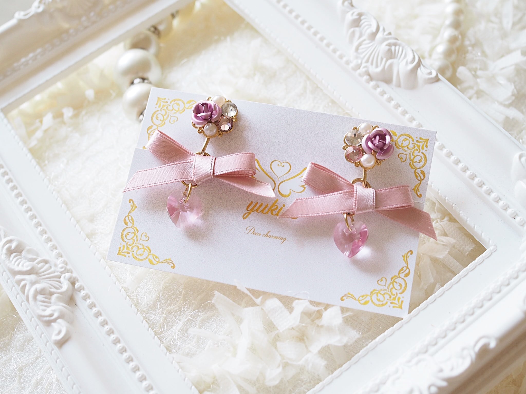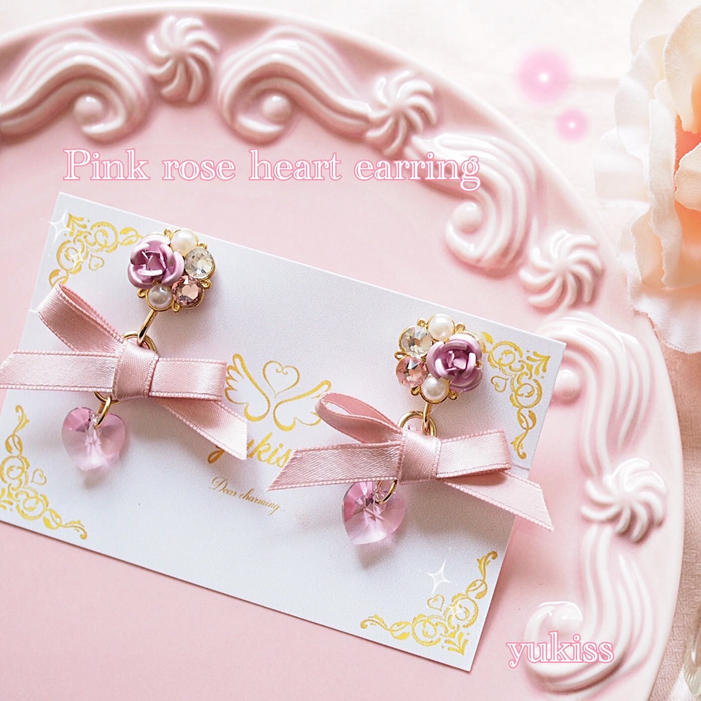 ビジュー♥︎ピンクハート♥︎イヤリング