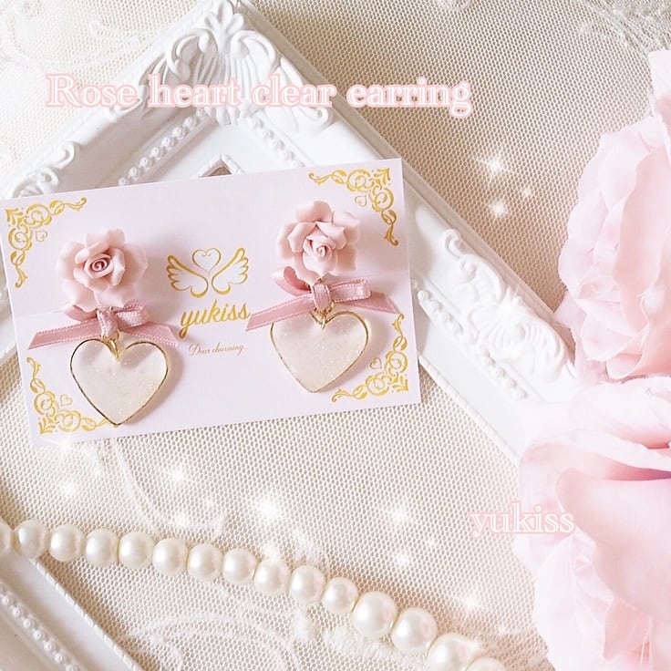 ローズ♥︎クリアハート♥︎イヤリング