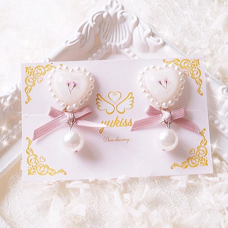 フラワー♥︎パール♥︎ハートイヤリング