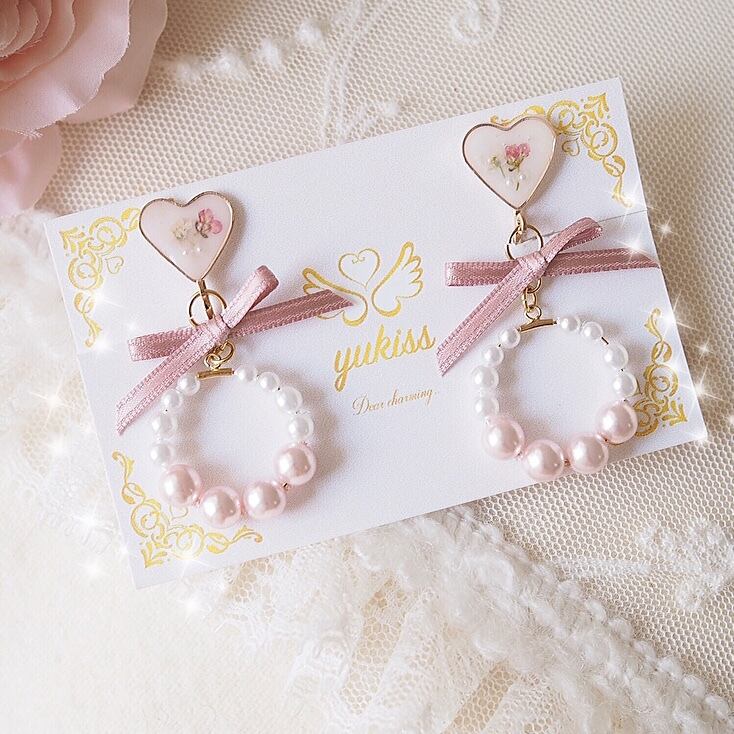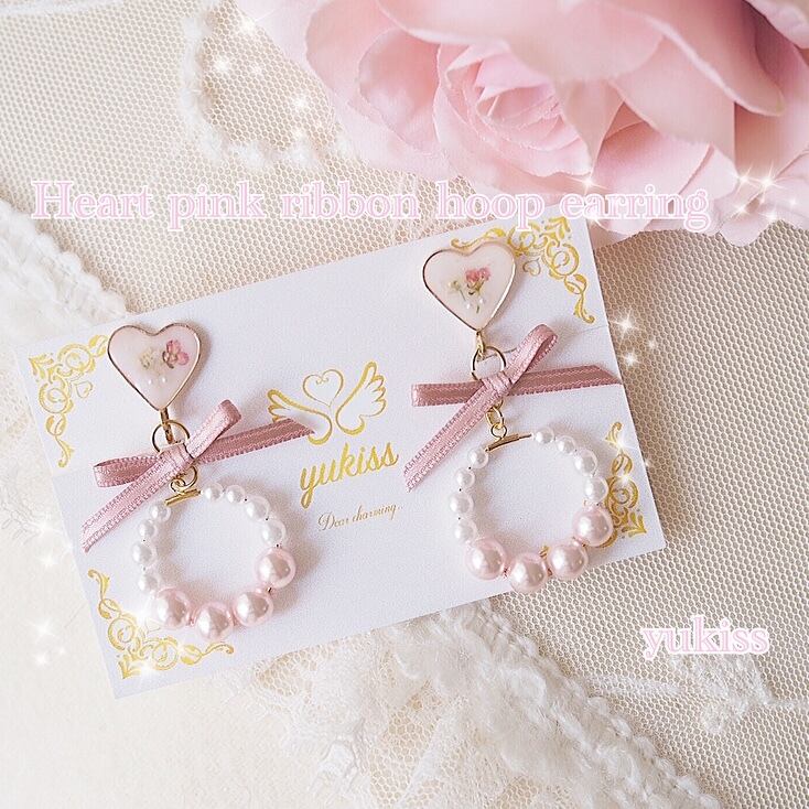 ハート♥︎ピンク♥︎リボン♥︎フープイヤリング